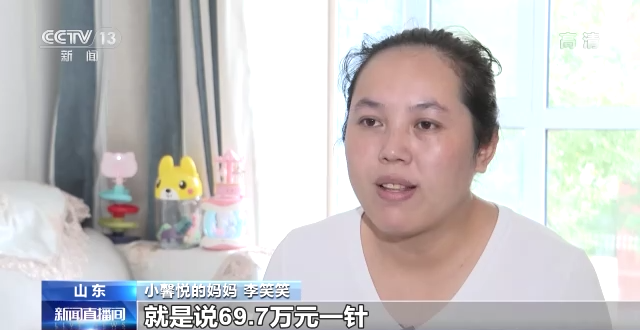 *小馨悦的媽媽 李笑笑:*當時公佈了價格,69.7萬元一針,第一年需要打6針,到第二年降到55萬一年,我們就又等了半年。等到商業保險可以報銷10萬,青島有個大病可以報20萬,就是報銷30萬塊錢,我們自己可以掏25萬的時候,我們才選擇給她打這個針。希望國家政府部門給我們一部分補貼,對於我們來説也是減輕一下經濟壓力的負擔。