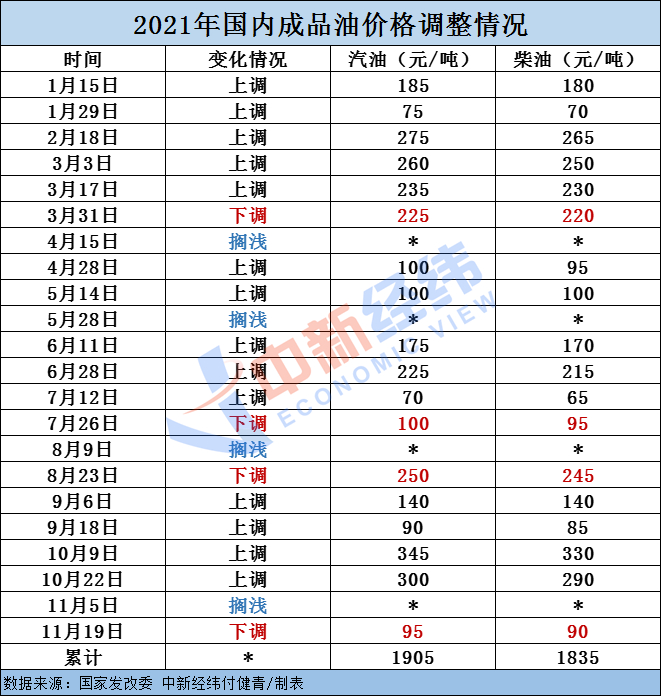 據中新經緯梳理,今年以來,國內成品油價格已進行了二十二輪調整,累計“十四漲四跌四擱淺”,汽油價格累計上調1905元/噸,柴油價格累計上調1835元/噸。在已經下調的四次價格中,最大幅度為8月23日進行的調整,其中汽油每噸下調250元,柴油每噸下調245元。如果本輪調整落實,將是年內第五次下調。
