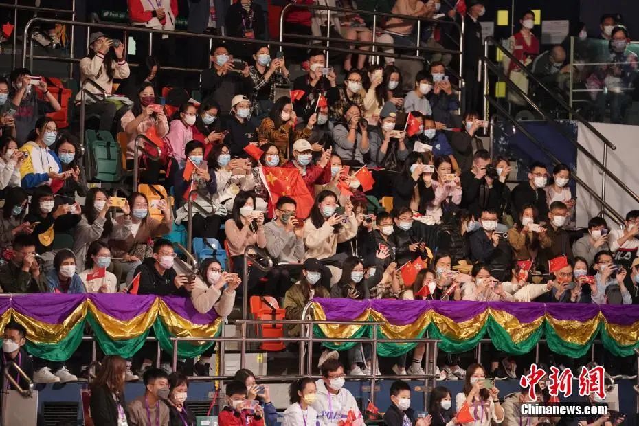 12月4日上午,內地奧運健兒代表團的部分運動員來到香港伊利沙伯體育館,向現場觀眾示範表演體操、蹦牀、羽毛球、擊劍、乒乓球等項目。中新社記者 張煒 攝