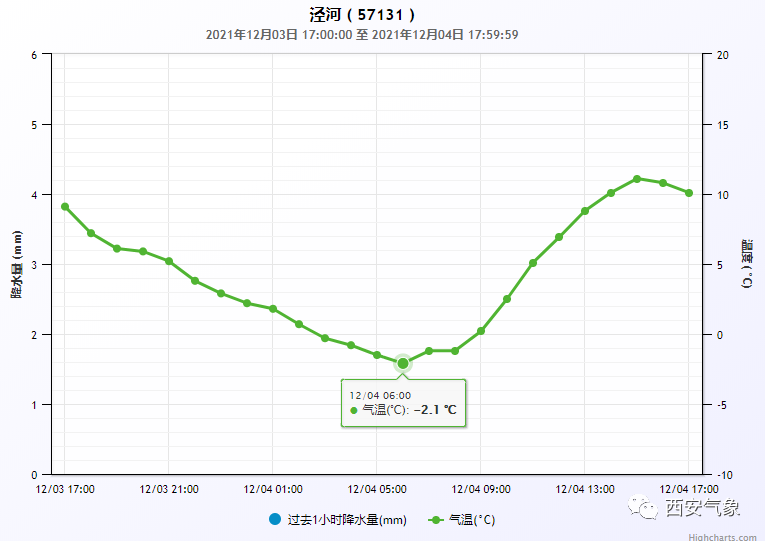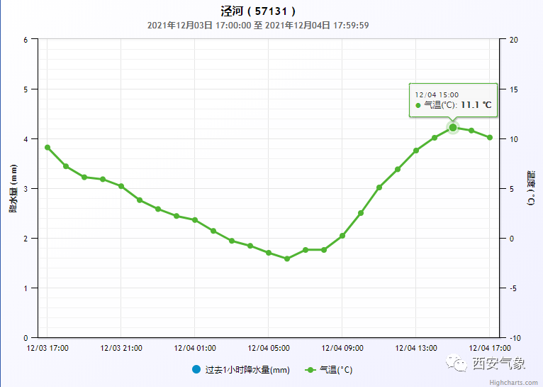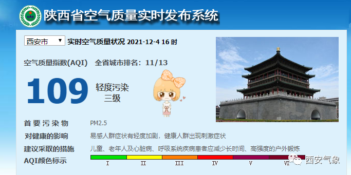 西安市氣象台2021年12月04日16時發佈天氣預報:受西北氣流控制,5-6日以晴到多雲天氣為主,7日受短波槽影響,傍晚至夜間有一次降水天氣過程 。