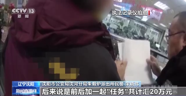 *瀋陽市公安局瀋河分局朱剪爐派出所民警 宋曉偉:*後來説是前後加一起任務共計匯20萬,他們的“工作人員”應該是好幾個人,層層地去給她洗腦,最後是“主任”説的“秘密任務”。