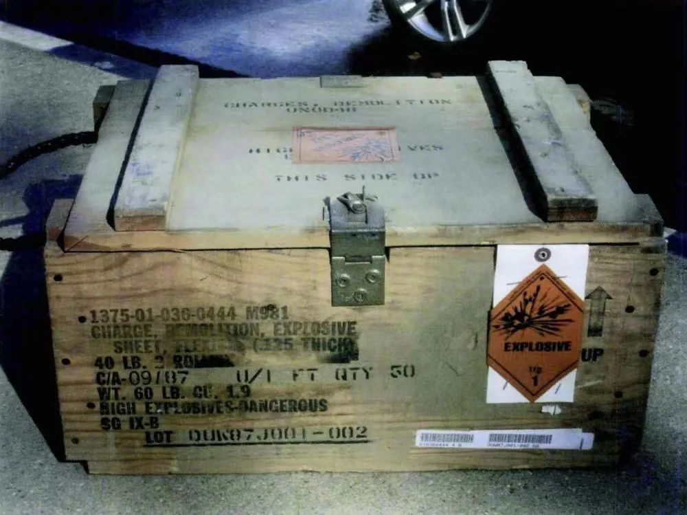 ▲2010年11月5日,在弗吉尼亞州匡提科,一個被盜的軍用爆炸物的箱子被展示出來