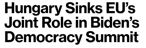 據彭博社12月2日消息,在1日舉行的歐盟大使會議上,匈牙利反對歐盟集體參加美國即將舉辦的“民主峯會”。匈牙利總理辦公室部長古利亞斯説,“匈牙利沒有美國那樣嚴重的民主問題。在匈牙利,我們從沒有接近三分之一的選民認為選舉被操縱,不管誰贏得選舉,我希望我們國家不會像美國那樣”。