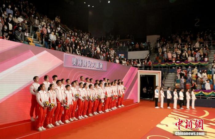 12月4日,內地奧運健兒訪港代表團成員在香港伊利沙伯體育館參加奧運健兒大匯演。 中新社記者 張宇 攝