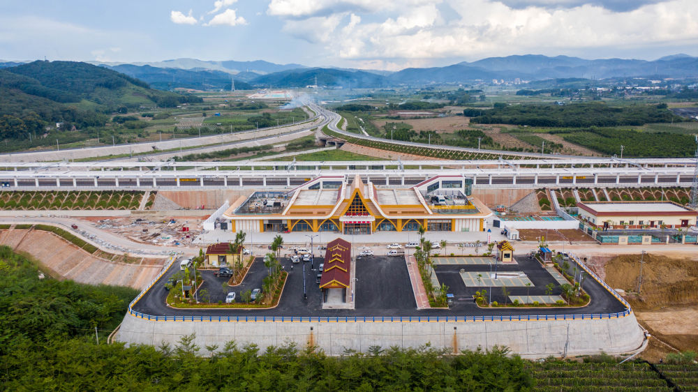這是9月29日拍攝的野象谷車站一景(無人機照片)。 新華社記者 胡超 攝