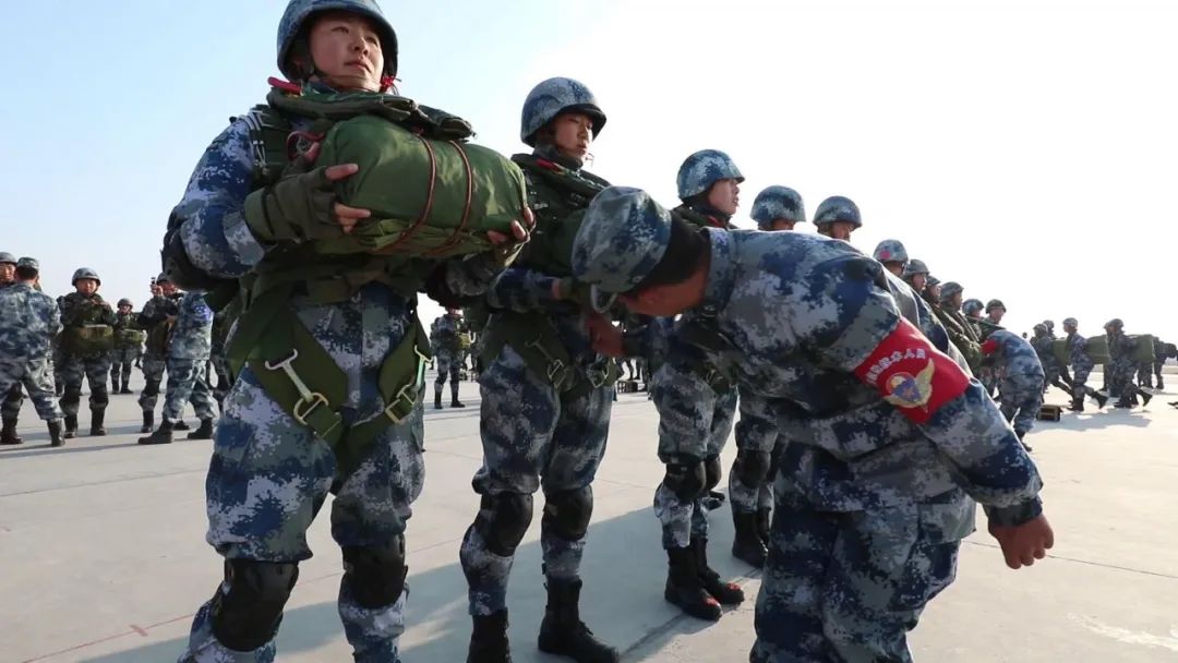 女兵們在千米高空勇敢躍出艙門