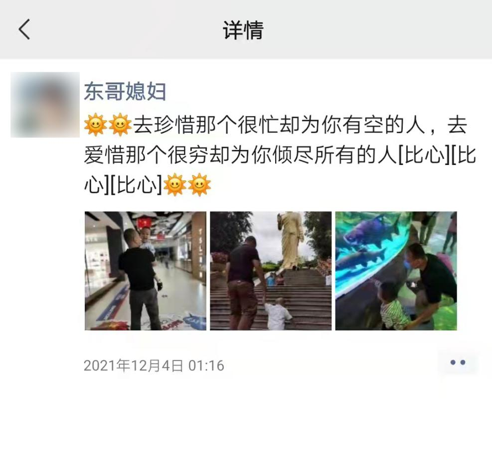 12月4日,蔡曉東奉命執行邊境一線抓捕毒販任務,妻子因為哄孩子很晚都沒睡着,凌晨1時16分,妻子在自己的微信朋友圈發了3張丈夫前幾天請假帶孩子游玩時的照片,並留言安慰自己,“珍惜那個很忙卻為你有空的人,愛惜那個很窮卻為你傾盡所有的人。”只是,曉東再也看不到妻子寫給他的朋友圈了。