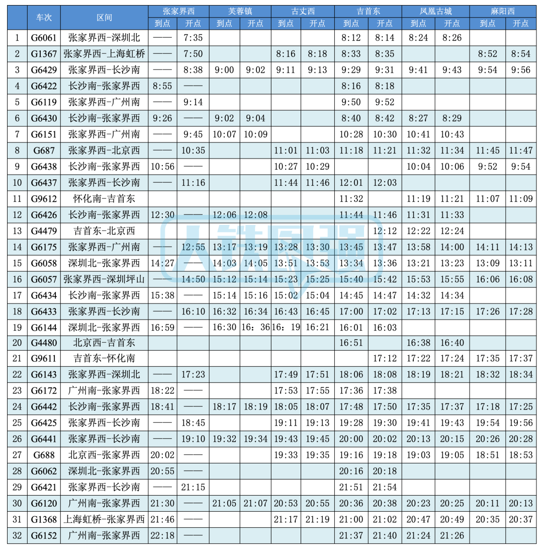目前,北京、上海、廣州、深圳等地都有開往張家界的直通動車組列車。如果你從北京出發,只需7小時38分就可抵達鳳凰古城。