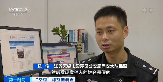 江蘇無錫市梁溪區公安局網安大隊民警 陳俊 :我們調查了這個包裹的發件人跟發件電話,發現發件人的姓名是假的,電話號碼也是空號。