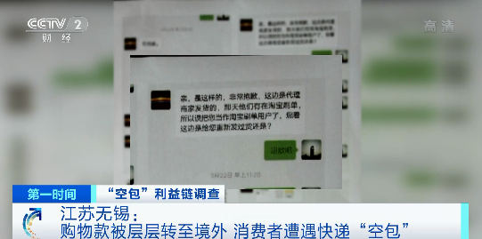 警方經過查詢資金的流向後,發現賣家已經把這筆款項層層轉出,最終流到境外,這是林先生向警方提供的他和賣家的聊天記錄以及交易明細。記者看到賣家對林先生的遭遇解釋稱這是代理商發貨的當天有在淘寶刷單,所以誤把林先生當作淘寶刷單用户。警方通過對快遞公司的走訪瞭解到,像這樣沒有物品卻又顯示真實快遞單號的特殊快遞件,快遞行業統稱為空包。