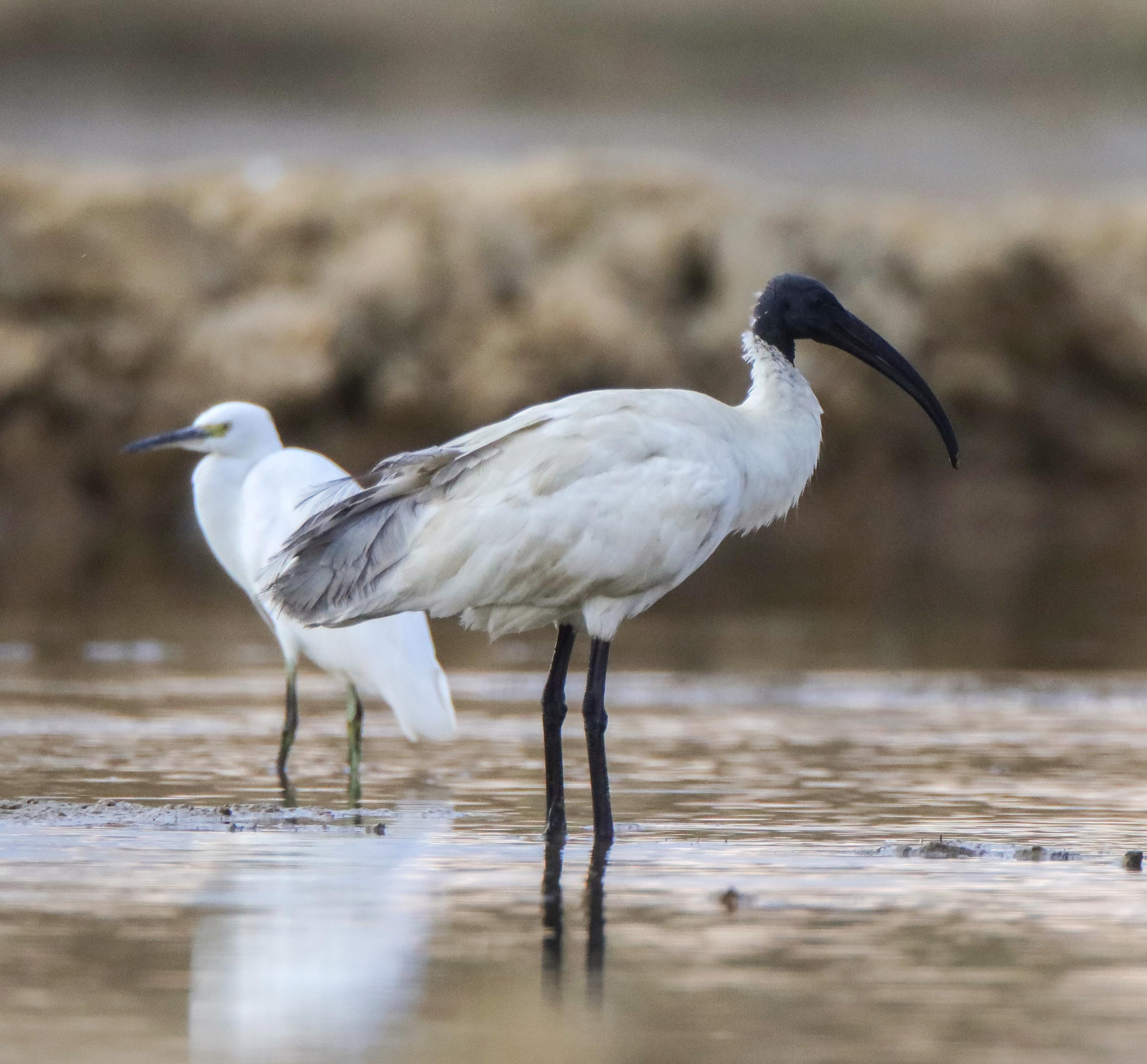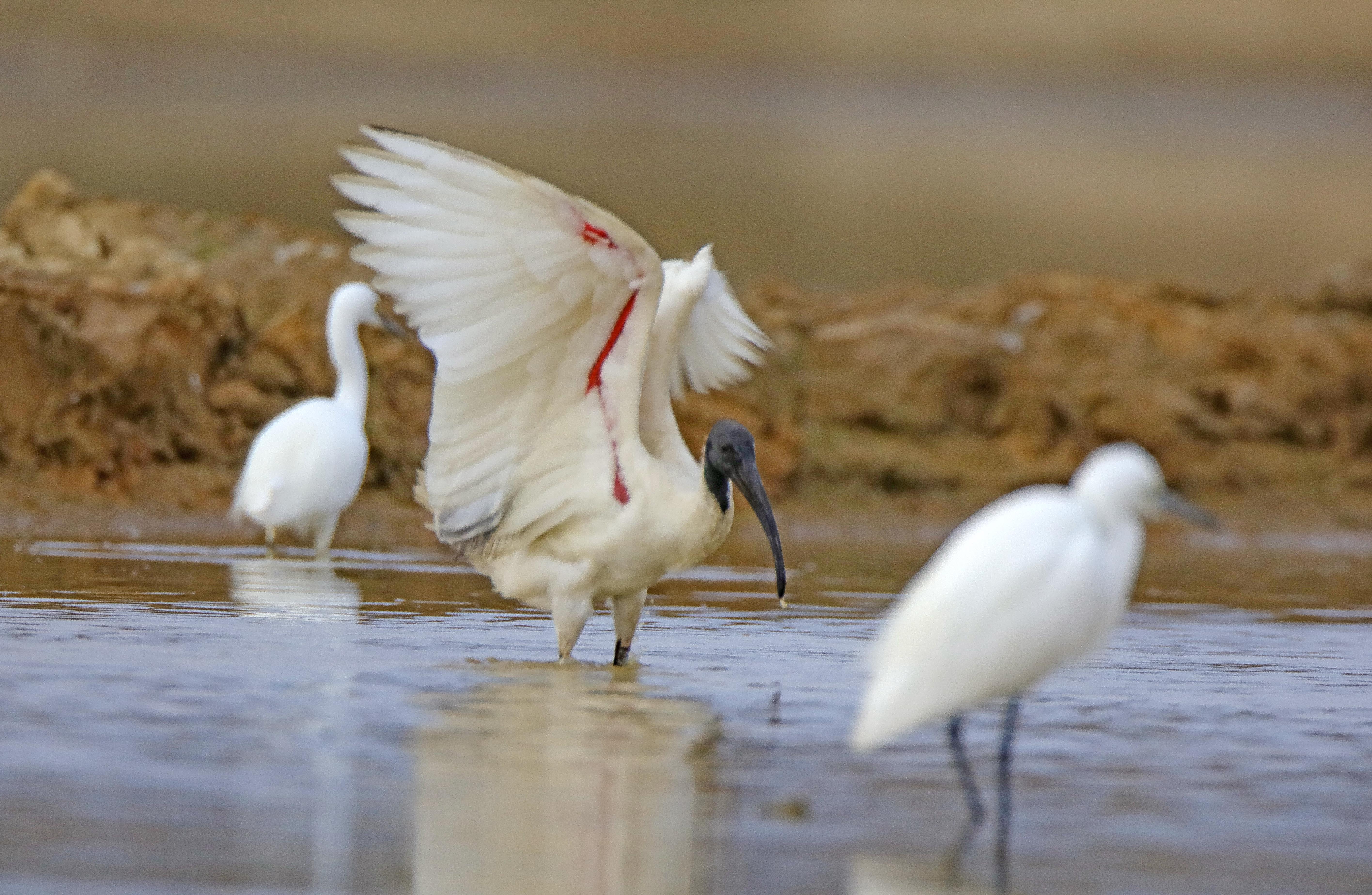 據觀鳥愛好者介紹,當時是在覓食的黑鸛羣和白鷺羣中拍到一隻黑頭大鳥,這隻鳥全身羽毛白色,頭與上頸部黑色,嘴呈黑色,長而下彎,腳部同樣黑色。經鳥類專家韓聯憲教授確認,該鳥為黑頭白䴉(也稱聖䴉)。