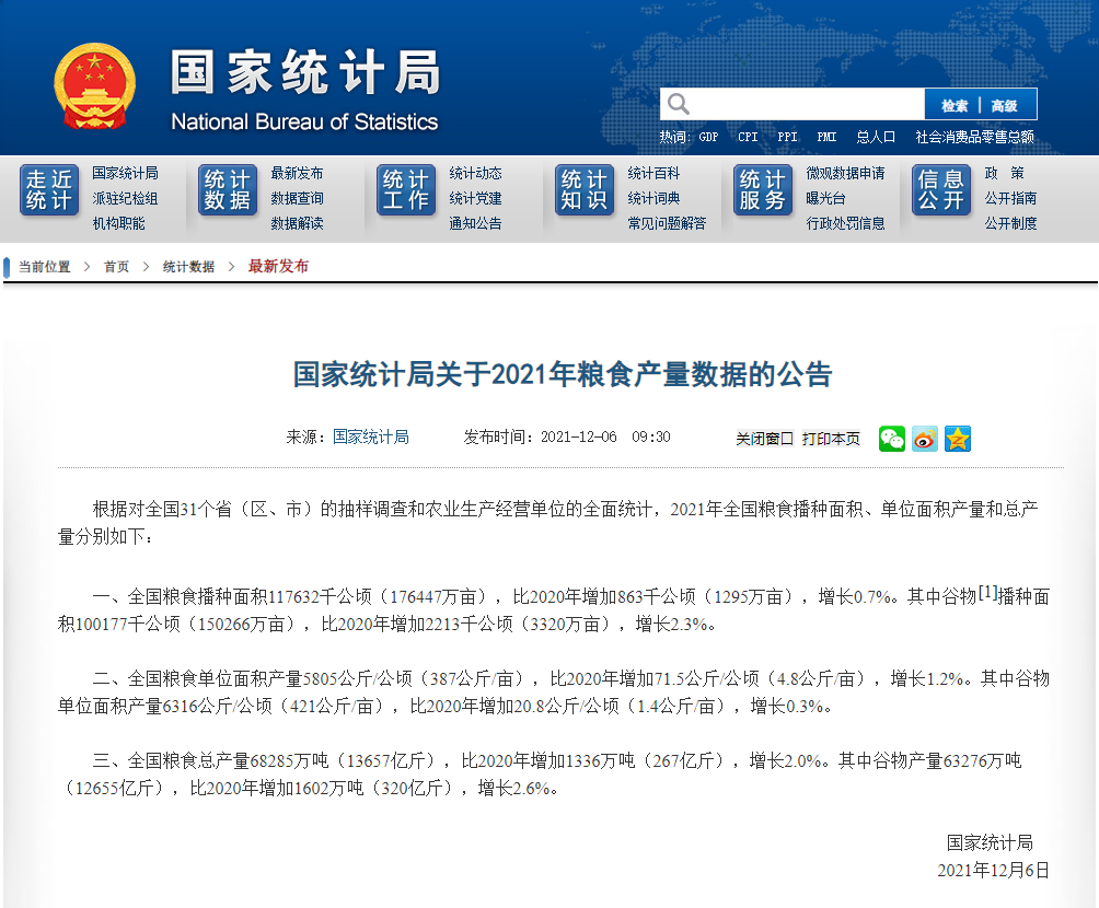 2021年全國糧食產量再創新高——國家統計局農村司副司長王明華解讀糧食生產情況