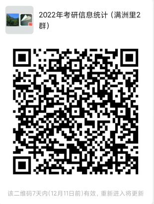 符合條件的考生可掃下方二維碼加入“2022年考研信息統計羣”微信羣。目前在滿洲里市居住的考生加入“滿洲里1羣”或“滿洲里2羣”;在扎賚諾爾區居住的考生加入“扎賚諾爾區羣”。為避免重複統計,考生只能加入其中一個羣。