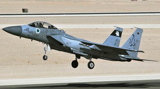 外媒:以色列F-15戰鬥機起落架故障,僅用一前一後兩個機輪緊急着陸