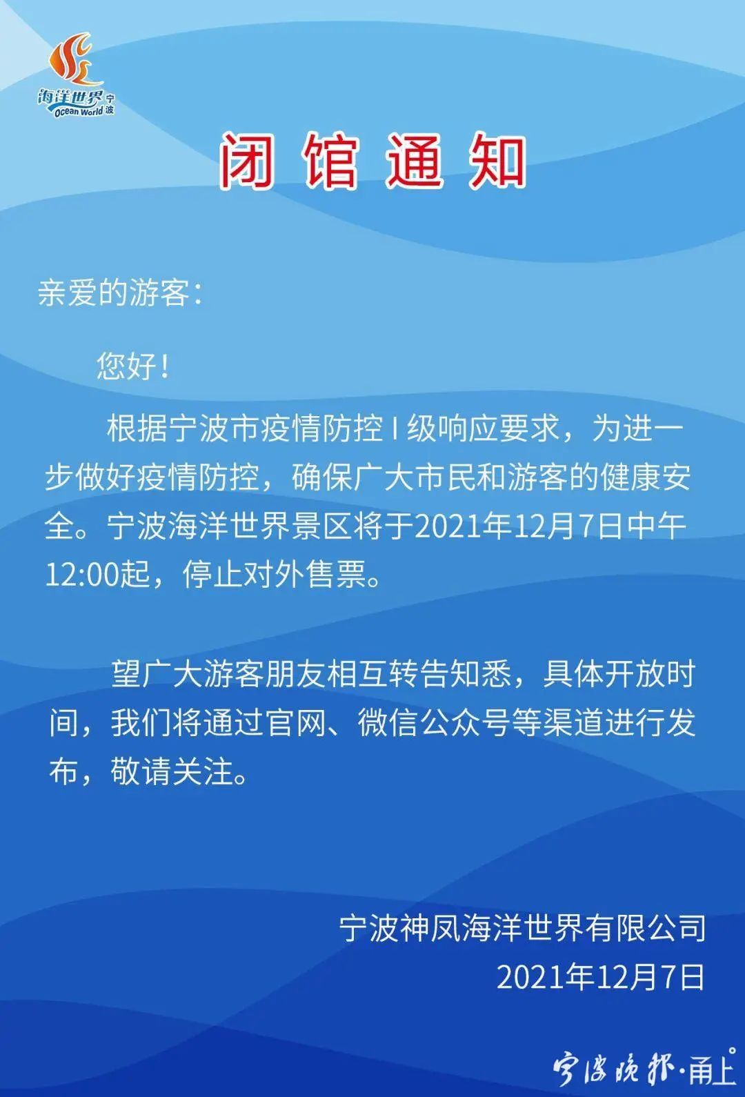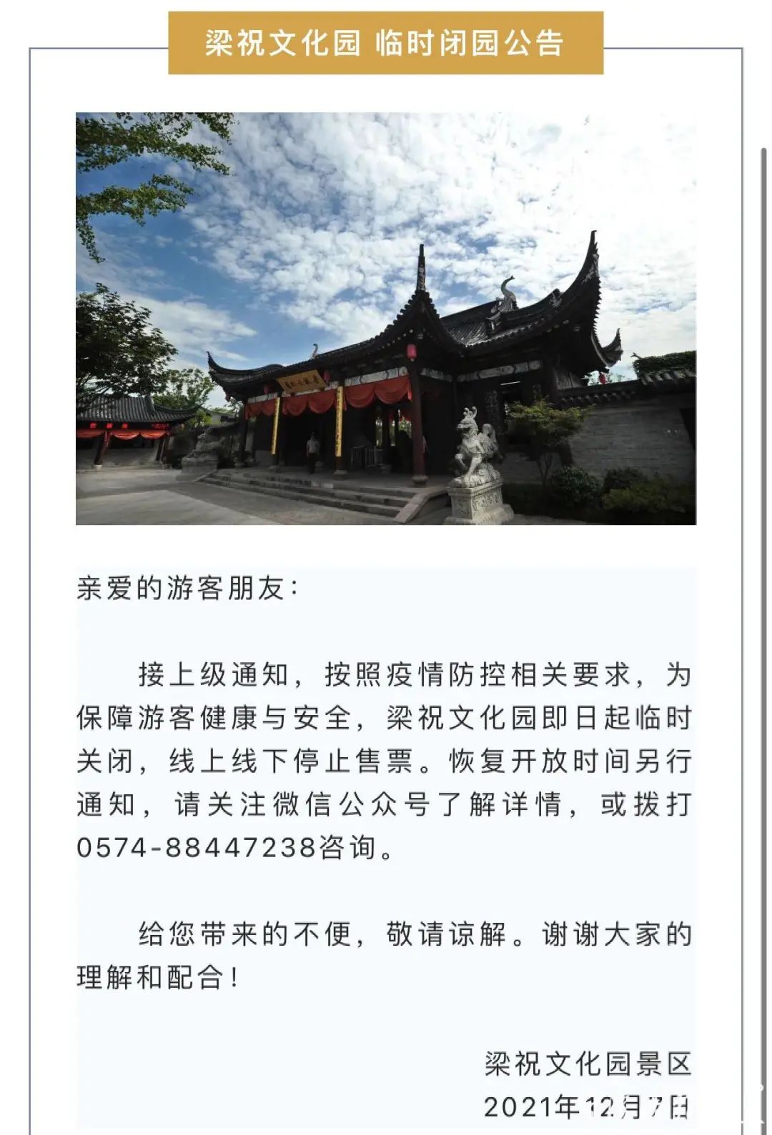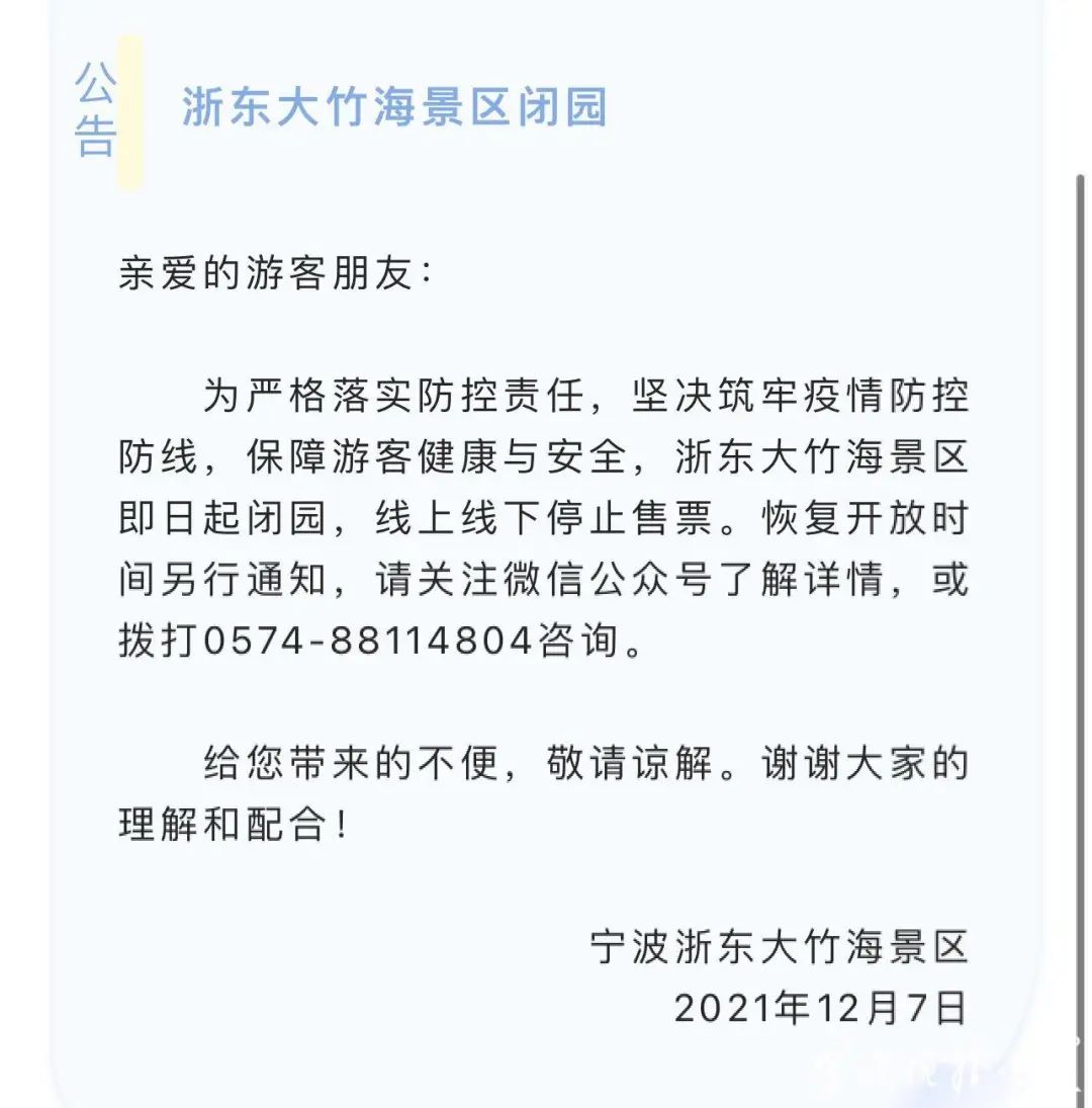 記者注意到,目前,為嚴格落實防控責任,保障遊客健康與安全,浙東大竹海景區、寧波五龍潭景區、梁祝文化園、寧波海洋世界等景區通過微信公眾號等平台陸續“官宣”,即日起臨時關閉,線上線下停止售票,恢復開放時間另行通知。同時,慈谿虞氏舊宅等部分其他區縣市景區自發臨時關閉。