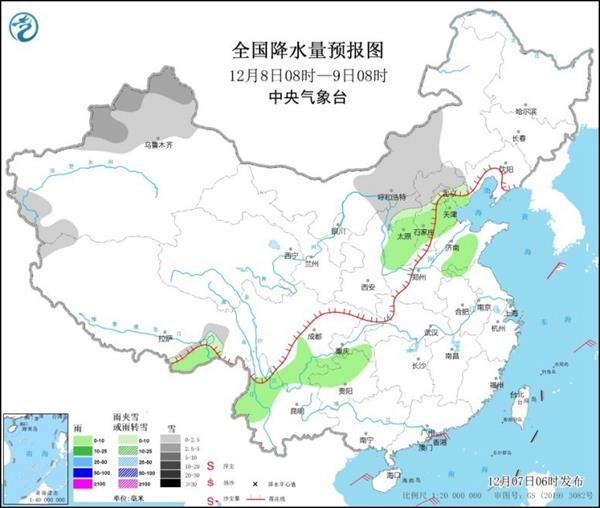 具體來看,中央氣象台預計,今天新疆北部、內蒙古西部、西北地區東部和中部等地的部分地區有小到中雪或雨夾雪,其中,內蒙古河套地區、甘肅東部、陝西北部等地的部分地區有大雪(5~6毫米)。陝西中南部、西南地區東北部、雲南西部、西藏東南部等地的部分地區有小雨,其中,四川盆地西北部等地局地中雨。