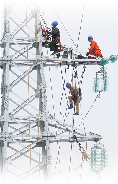 江西永豐縣供電企業黨員服務隊加快農村電網升級改造,保障羣眾生產生活用電。