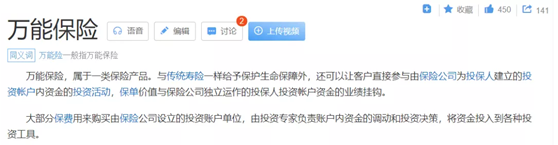 保險,作為金融的三駕馬車之一,本身具備金融資產屬性。市場上的“萬能型”險種,通常為萬能型年金保險或萬能型終身壽險,以搭配的普通年金給付的生存保險金作為保費,以保險公司的萬能賬户投資業績為依據,實現保單價值的遞增。