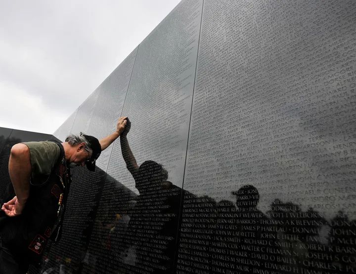 2010年5月29日,在美國首都華盛頓市中心的越戰紀念碑前,一名老兵懷念去世的戰友。新華社記者 張軍 攝