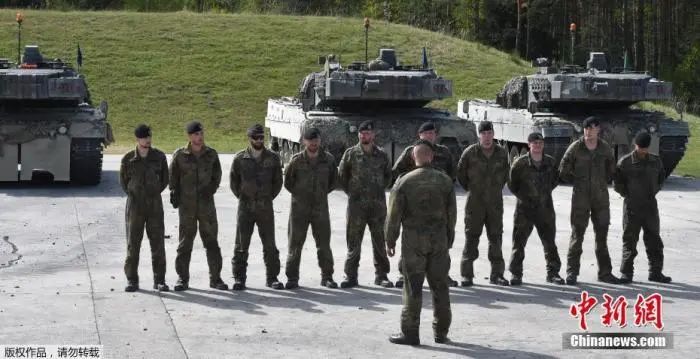 資料圖:當地時間2017年5月11日,德國格拉芬沃爾,2017“強大歐洲坦克挑戰賽”舉行,北約成員國美國、烏克蘭、德國、法國、奧地利軍隊參加此次挑戰賽。