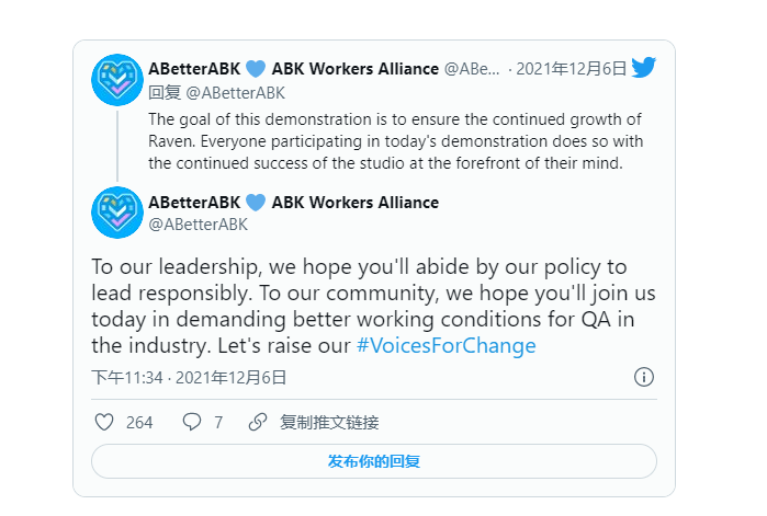 對此,動視暴雪員工組成的聯盟“ABK”在社交平台上表示:今天是RavenSoftware工作室QA團隊的第二日罷工示威活動,來自德克薩斯和明尼蘇達的暴雪QA團隊成員也一起加入了此次抗議。