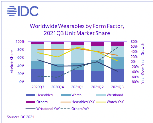 IDC:2021年Q3全球可穿戴設備出貨量增長9.9%