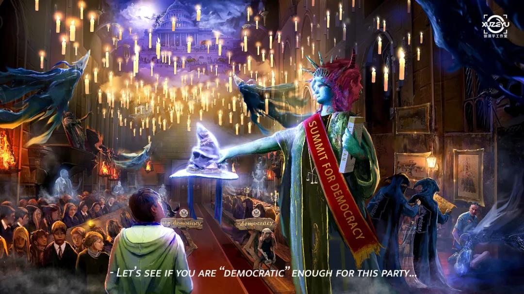 “真相了!”新華社漫畫“細節拉滿”,戳破美國“民主峯會”本質