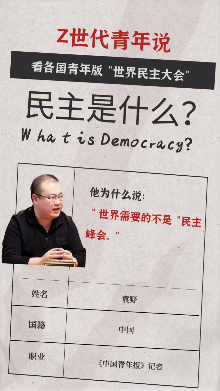 談及中國民主形式,青年嘉賓袁野想起了前段時間給區人大代表投票的經歷。在中國,“人民當家作主”就是中國的民主。對於中國的“全過程民主”他又做了怎樣的介紹?
