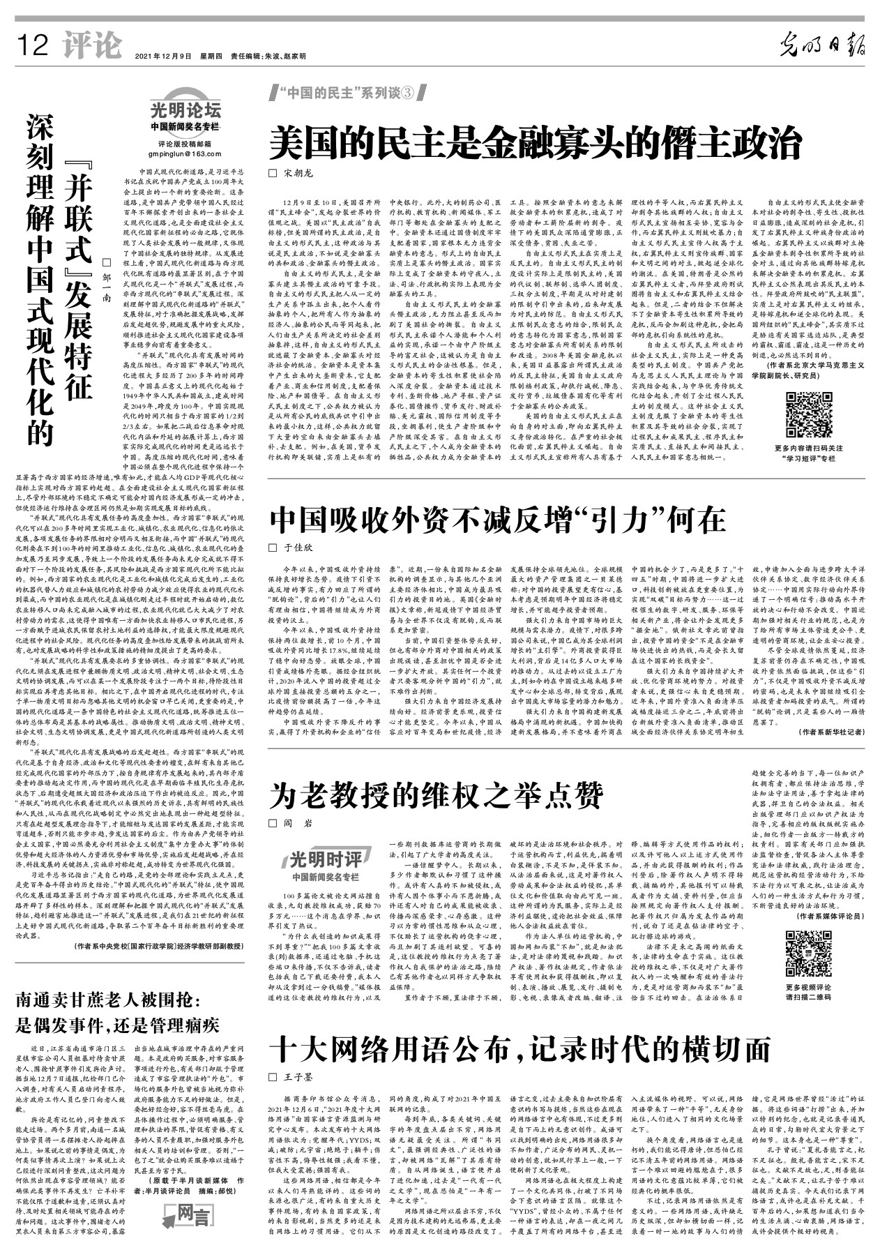 12月9日至10日,美國召開所謂“民主峯會”,發起分裂世界的價值觀之戰。美國以“民主政治”自我標榜,但美國所謂的民主政治,是自由主義的形式民主,這種政治與其説是民主政治,不如説是金融寡頭的共和政治、金融寡頭的僭主政治。