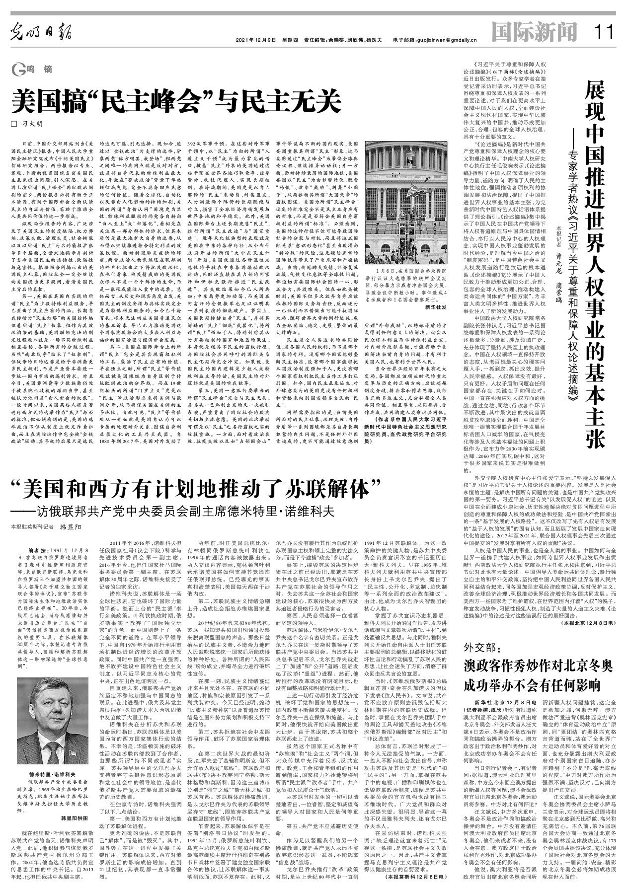 第三,美國一意孤行要舉辦的所謂“民主峯會”完全與民主無關,是其從一己私利出發的又一次瘋狂表演,嚴重背離了國際社會的現實關切與主流意願。美國的此次舉動可謂是以“民主”之名行霸權之實的故技重施。一方面,面對着政治衰敗、抗疫失敗以及如“佔領國會山”事件等亂局不斷的國內現實,美國妄圖重振其所謂“民主”形象,進而妄圖通過“民主峯會”來帶偏全球輿論議程、繼續操弄話語權;另一方面,面對持續衰落的國際地位,美國妄圖以“民主”為由拉幫結夥、販賣“恐懼”、渲染“威脅”、糾集“小圈子”,從而推動其所謂“大國競爭”的霸權圖謀。美國為所謂“民主峯會”設定的標準完全不是民主本身應有的標準,而是是否符合美國自身霸權利益的所謂“標準”。必須看到,美國的這種行徑不但可能導致國際社會的分裂與對抗,而且將造成國際關係“意識形態化”甚至出現滑向“新冷戰”的風險,這無疑給正常的國際秩序帶來了嚴重危害和嚴峻挑戰。當前,新冠肺炎疫情、經濟復甦放緩、氣候變化危機等全球性問題,都迫切需要國際社會團結一心、形成合力,共渡難關。但在如此關鍵時刻,美國不但多次放棄自身應該承擔的國際義務與責任,反而還為一己私利而不惜做出可能干擾國際大局、阻礙世界大勢的倒行逆施,成為全球團結、穩定、發展、繁榮的最大絆腳石。