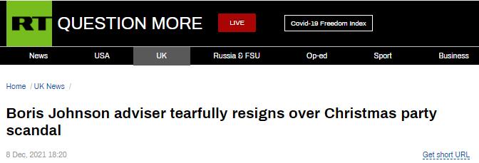 【環球網報道】綜合“今日俄羅斯”(RT)、英國廣播公司(BBC)最新消息,在英國首相約翰遜8日為引起爭議的首相新聞秘書“串供”視頻致歉後,事件當事人、英首相新聞秘書斯特拉頓在同日晚表達歉意,並“含淚辭職”。
