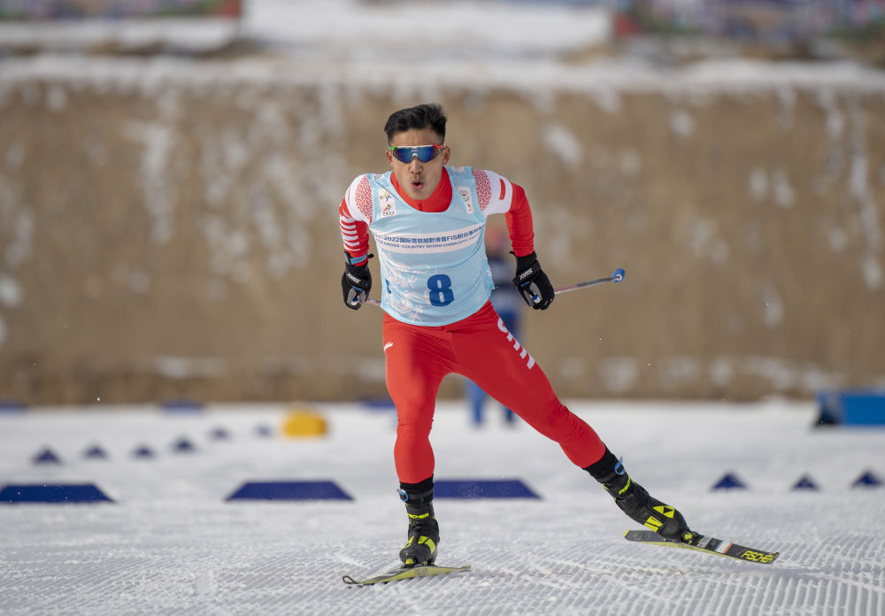 ↑這是吐爾松江·布爾力克在2021-2022國際雪聯越野滑雪積分系列賽温泉站男子個人10公里(自由技術)的比賽中(2021年11月22日攝)。