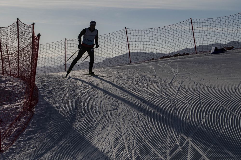 ↑這是在新疆温泉縣越野滑雪場拍攝的越野滑雪國家集訓隊運動員吐爾松江·布爾力克(2021年11月22日攝)。