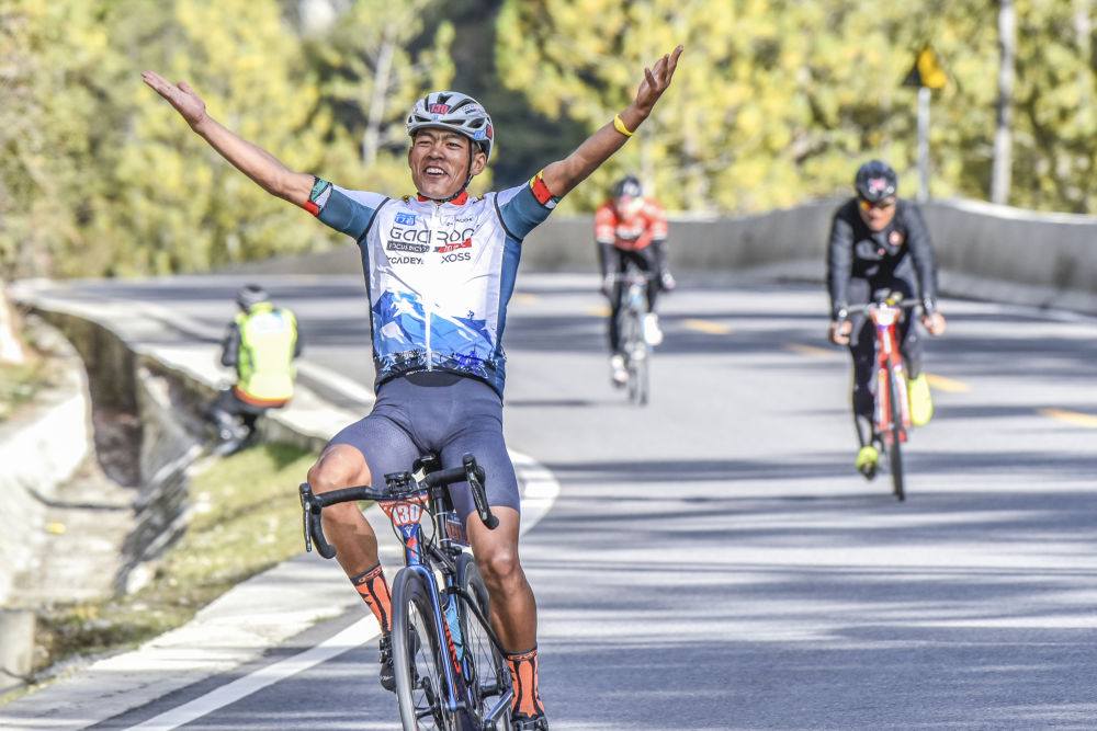 ↑這是吐爾松江·布爾力克(前)在騎闖天路高海拔自行車極限賽中(2018年10月14日攝)。