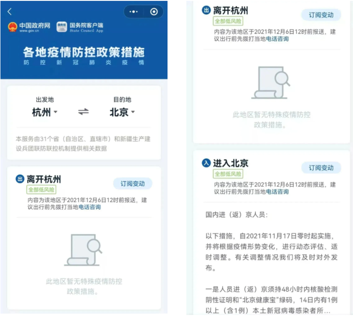 當所訂閲地區防控政策發生變化時,你將在微信的服務通知裏收到提醒。