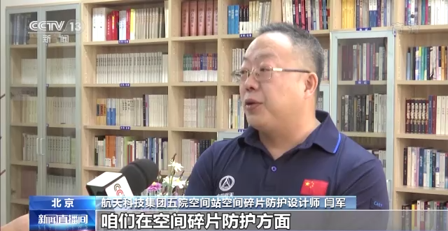 *航天科技集團五院空間站空間碎片防護設計師 閆軍:*隨着材料學的進步,咱們在空間碎片防護上面逐漸會採用一些新的方法,比如説最早期的天宮一號和天宮二號,咱們採用的專業上叫whipple防護屏,是通過兩層金屬板進行防護。但是在空間站的設計過程當中,我們也發現這種防護結構設計出來的空間站沒辦法達到它的設計指標,後來就採用了一種纖維材料和金屬材料進行結合,把這種先進技術帶到空間站的防護設計中,使空間站滿足了設計要求。