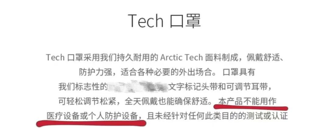 一款售價千元的新面料口罩在產品説明中明確,該口罩不能用作醫療設備或個人防護設備。