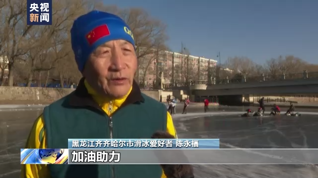 *黑龍江齊齊哈爾市滑冰愛好者 陳永福:*通過經常參加這項運動,自己很愉快。我們的老年生活也顯得豐富和多彩,通過積極參與,為我們的冬奧會的到來加油助力。