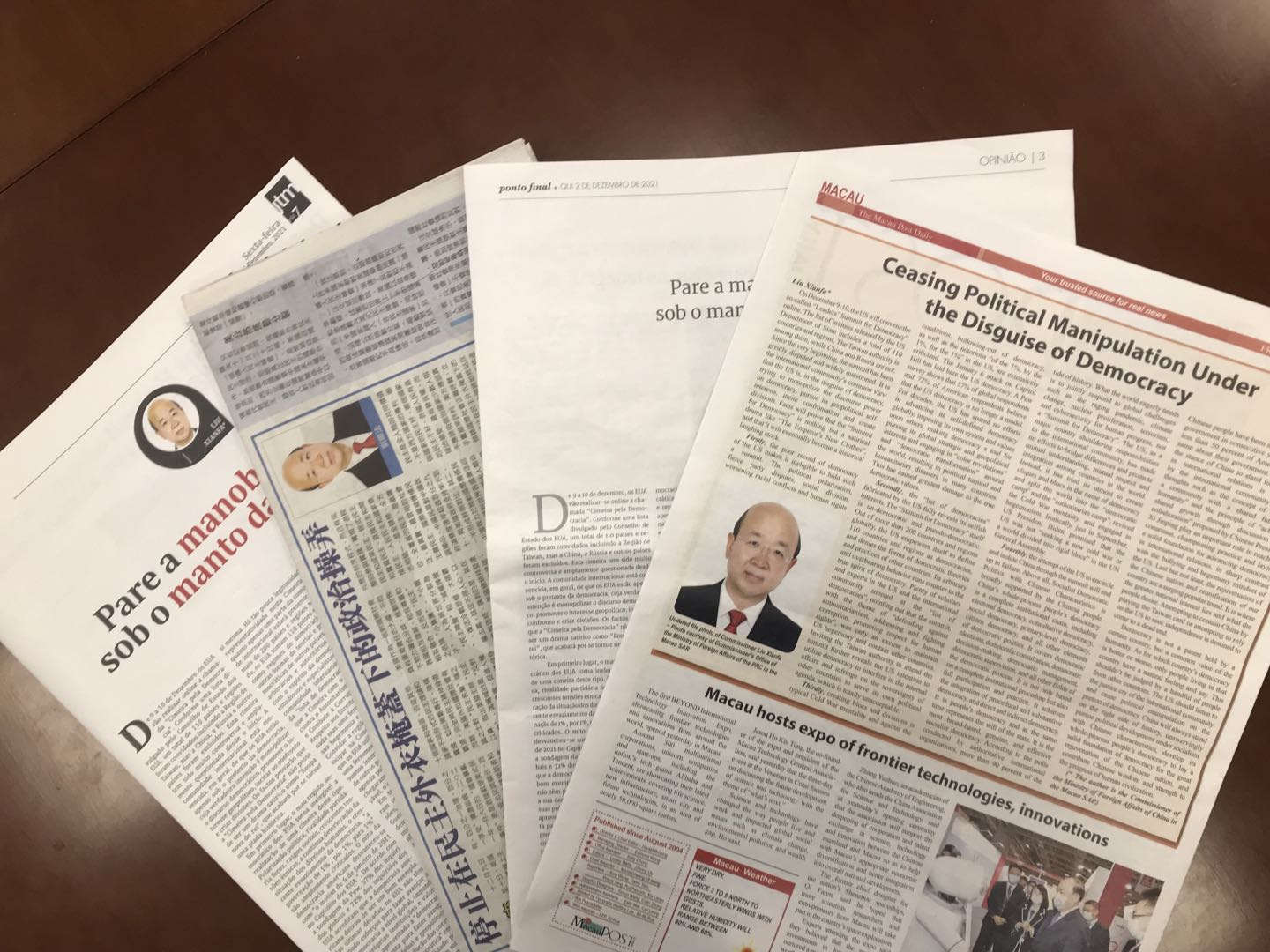 劉顯法特派員在澳門中英葡文媒體發表署名文章《停止在民主外衣掩蓋下的政治操弄》