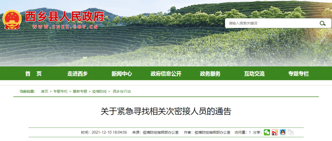 今天(12月10日),漢中市西鄉縣新型冠狀病毒感染的肺炎疫情防控應急指揮部辦公室發佈《關於緊急尋找相關次密接人員的通告》,全文如下: