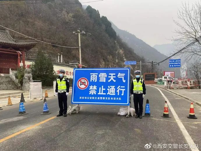 據西安交警長安大隊消息,由於210國道長安段降雪,致使210國道1326公里處開始,路面積雪結冰,不具備通行條件,為確保道路交通安全,避免發生重特大交通安全事故,西安交警長安大隊秦嶺中隊全面投入轄區道路交通安全管控工作。秦嶺中隊經請示上級,現在灃峪口公安檢查站對210國道實施臨時交通管制,時間由2021年12月10日9時起,解除時間暫定於2021年12月12日9時止 ,具體視天氣情況和道路情況決定。