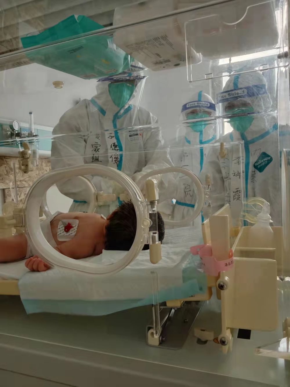 一支由呼吸、婦產、新生兒、麻醉等科室的十餘名醫護人員組成的醫療團隊迅速行動起來,對產婦進行健康監測、開啓清潔病區、調配新生兒呼吸機、規範新生兒出生後的防護流程,做足準備等待新生命的降臨。