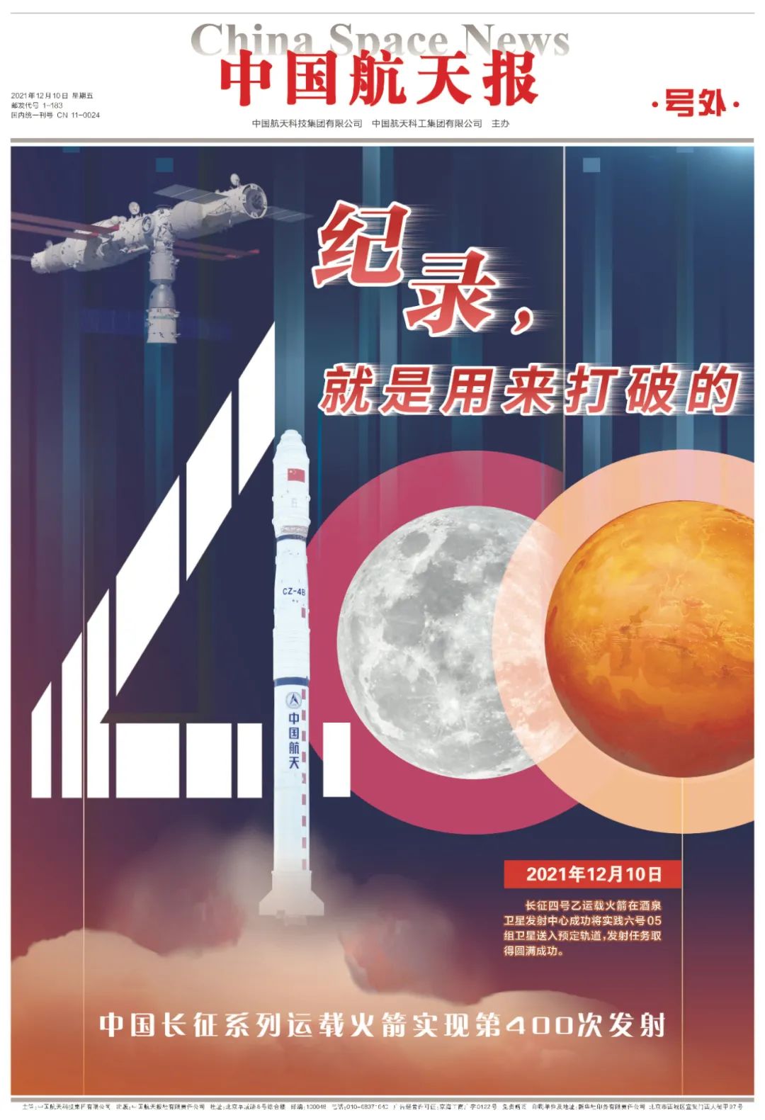 12月10日,中國航天事業奠基人錢學森誕辰110週年紀念日 的前一天 ,在他指揮首次發射的酒泉衞星發射中心 ,迎來了我國長征系列運載火箭的 第400次發射。