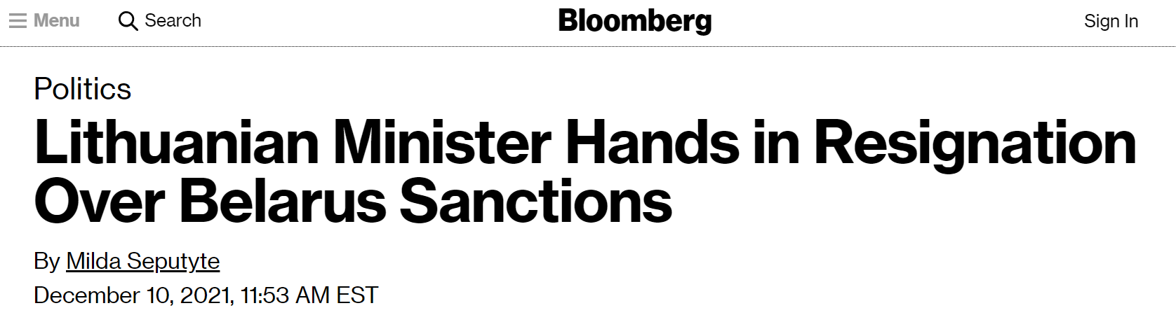 【環球網報道】美國彭博社消息,立陶宛外交部長蘭茨貝爾吉斯12月10日已正式提交辭呈。此前有批評聲稱,在美國等國針對多家白俄羅斯企業實施的制裁後,立陶宛未能阻止白俄羅斯鉀肥運輸。