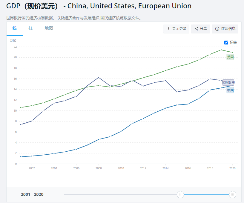 世界銀行數據顯示,中國在加入世貿組織後GDP高速增長,與此同時,包括美國、歐洲等發達國家的GDP也呈現增長趨勢。此外,中國也帶動了一批新興經濟體的增長。“怎麼會不承認雙贏,這就是最典型的雙贏。”雷達説。