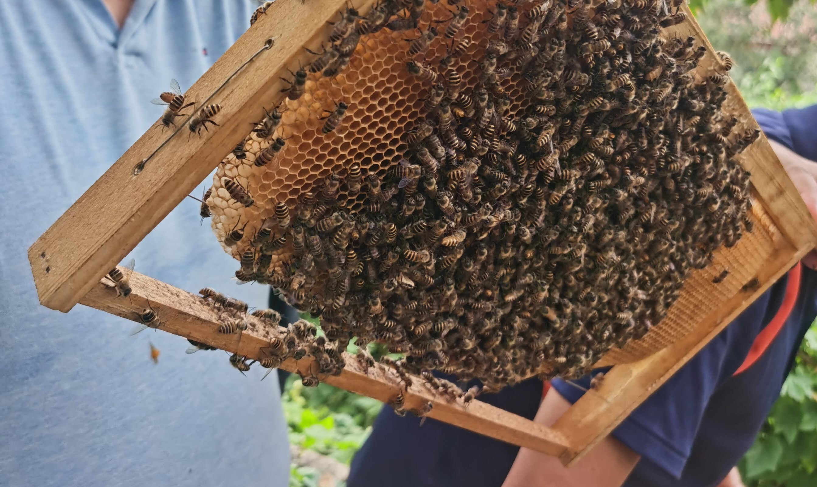 在雲台山脈中雲街道焦莊社區轄區附近,養蜂人丁乃進已經養殖蜜蜂8年了。“現在有150箱的規模,最初的種蜂是從山上一個山洞裏面發現的,第一窩的蜜蜂還有,我當時沒有取完。”丁乃進説,發現蜜蜂后,他就用一個箱子引了一部分蜜蜂過來做種蜂。春天的時候放在山頂上,呈放養狀態,慢慢地繁殖到如今的規模。但是他並不知道,自己馴化繁育的蜜蜂其實是野生北方中蜂,在連雲港市尚屬首次發現。省相關專家鑑定後表示,這是中華中蜂的一個旁支,個頭很小,外觀上看大約是常見的養殖蜜蜂的一半大。