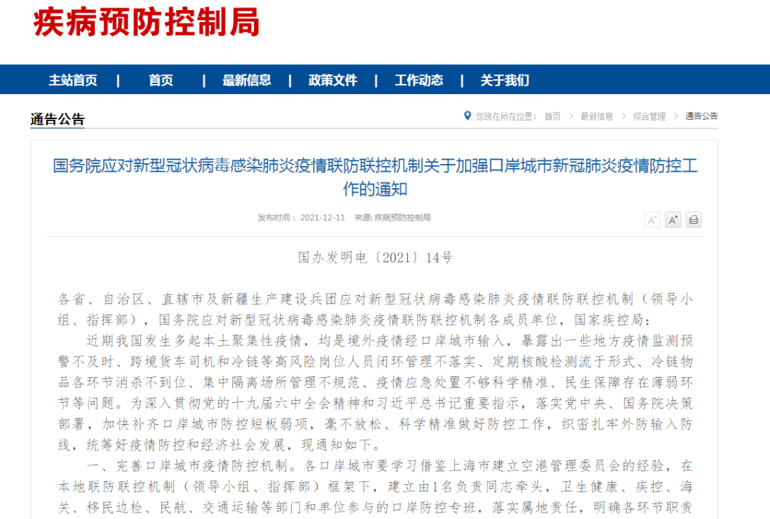 根據通知,上述要求的時間範圍為,從各省區市確定口岸城市範圍並公告之日起,至2022年3月15日。此外,通知還提出,有條件的口岸城市可研究在轄區內設置疫情防控緩衝區。