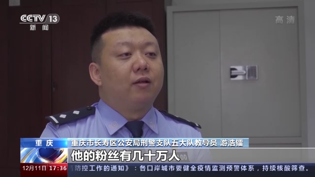 *重慶市長壽區公安局刑警支隊五大隊教導員 遊浩鐳:*我們還抓獲過一個犯罪嫌疑人,也是這個賭博網站的代理。他是專門做足球解説的一個主播,他的粉絲有幾十萬人,他也在這個平台上發了推廣鏈接,他有很多粉絲也是通過他發的推廣鏈接註冊成為他的下線參賭人員,然後就在裏面賭球。