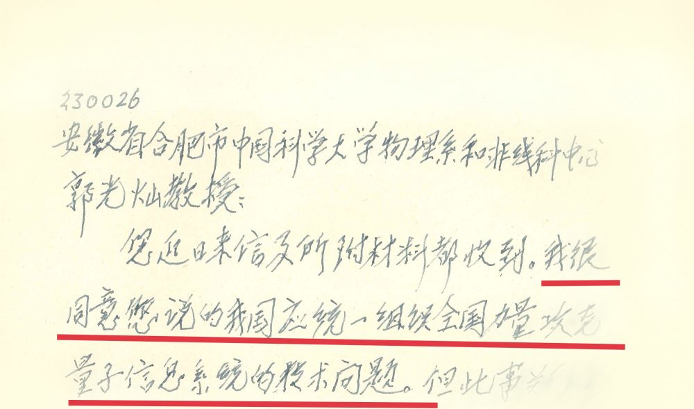 “您近日來信及所附材料都收到,我很同意您説的我國應統一組織全國力量攻克量子信息系統的技術問題。”錢學森在信中寫道。