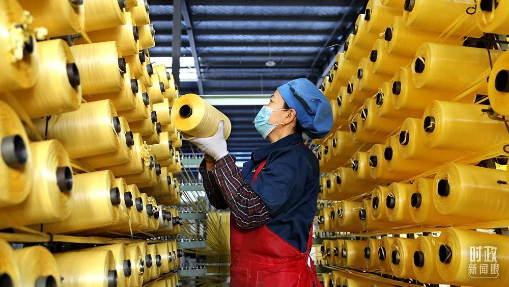 △2021年12月,江蘇連雲港,工人在“扶貧車間”生產加工編織袋。(圖/視覺中國)